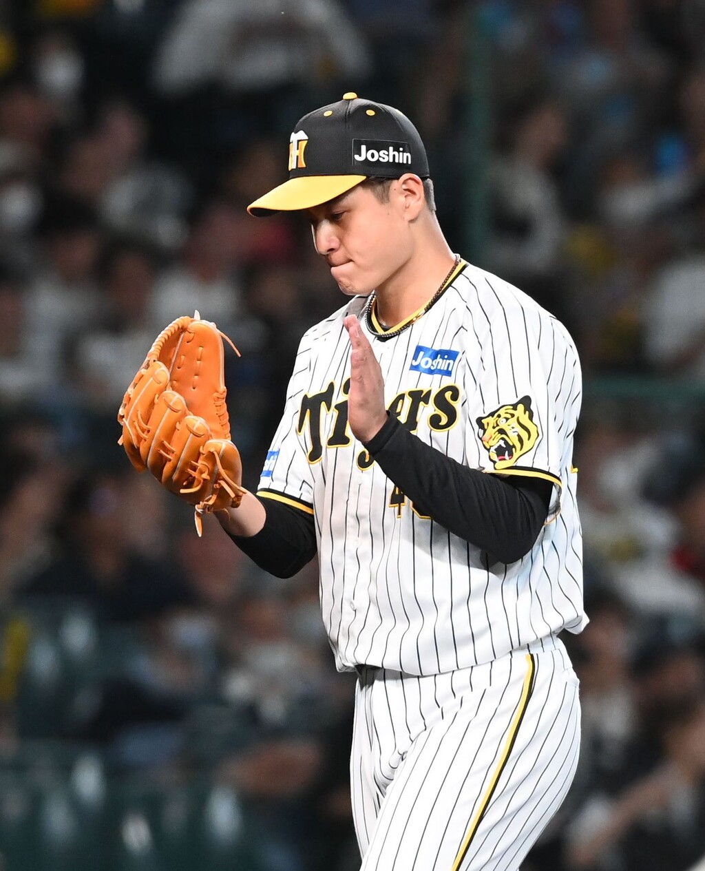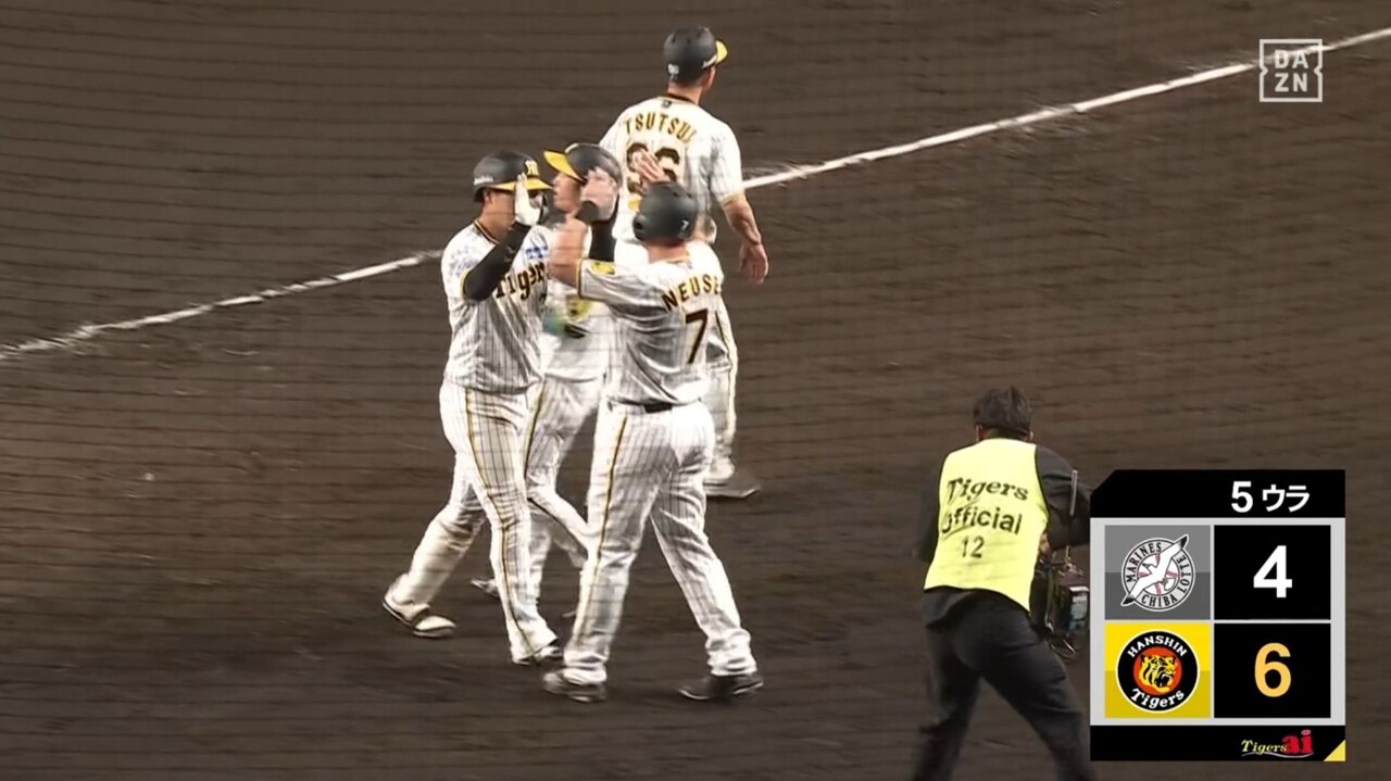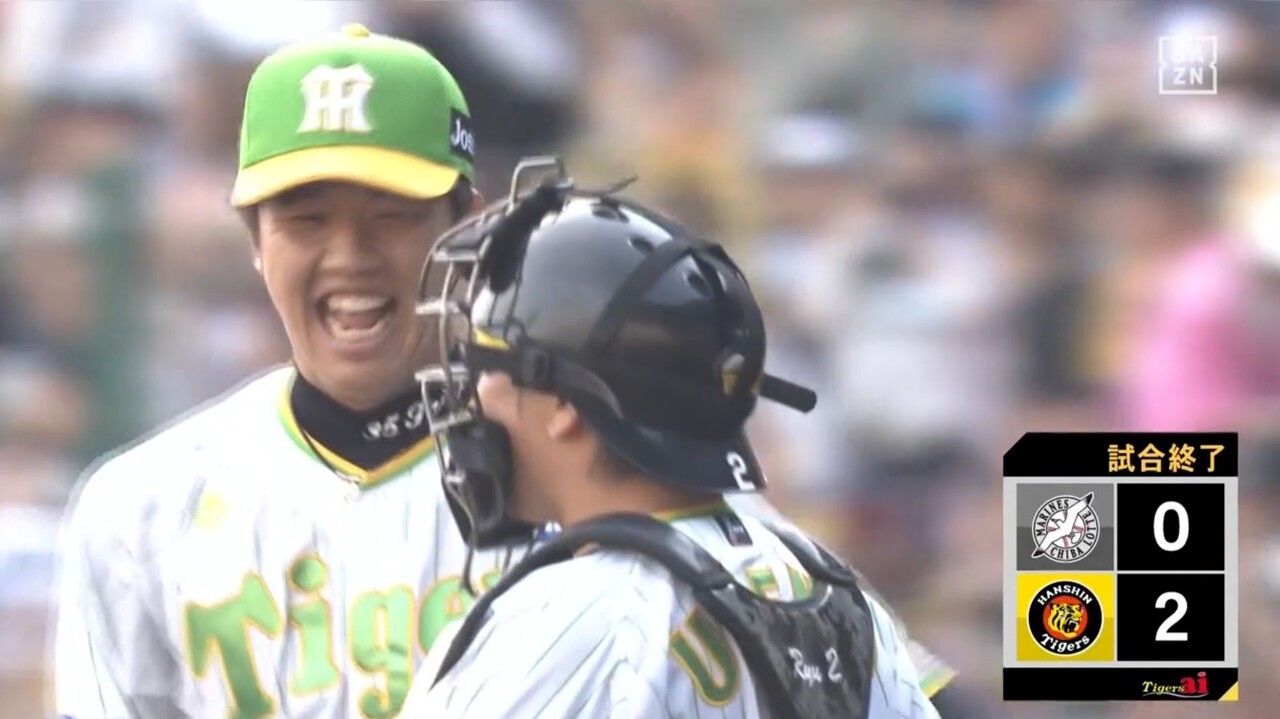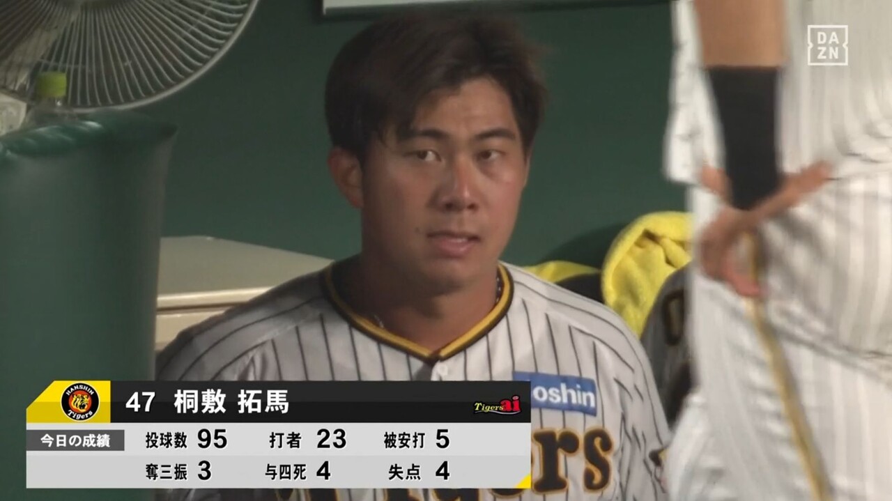 状態が心配されたが、投球練習を経てそのまま続投。甲子園からは大きな拍手が巻き起こった。だが、続く中村奨に四球を与えるなど1死一、二塁。山口に左中間へ痛恨の逆転3ランを浴び、浜地は思わずその場でしゃがみこんで動けなかった。たまらず岡田監督が交代を決断。右腕は涙を流しながらマウンドを降りた。
