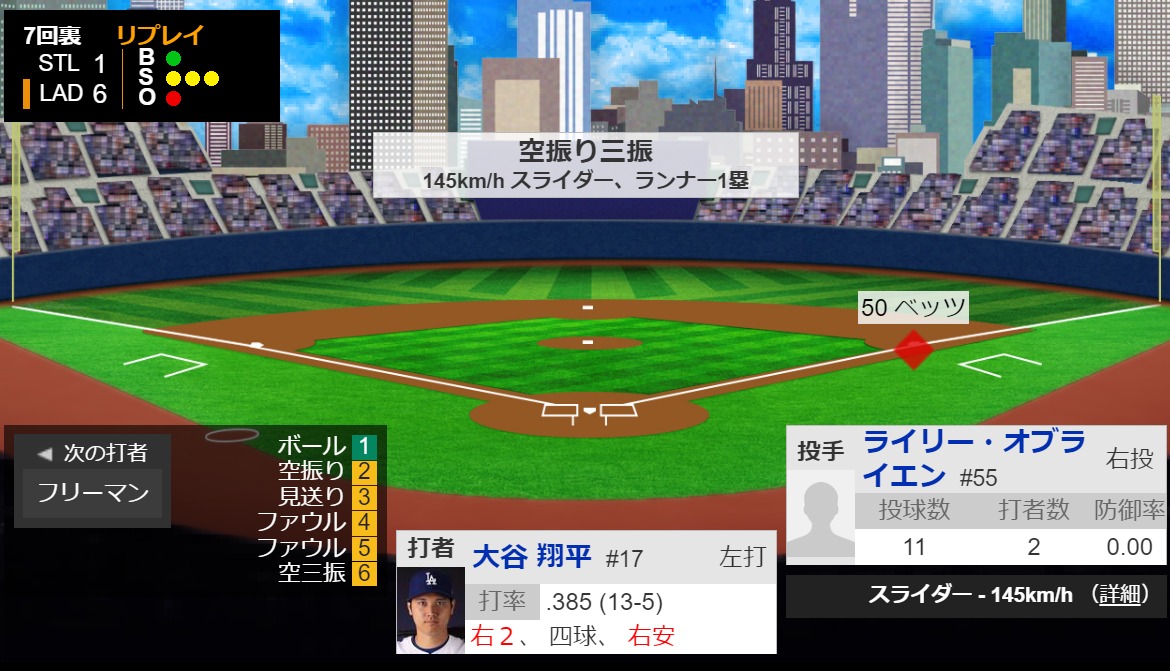 ドジャースは7得点で快勝し、今季3戦を終え2勝1敗。3回にM.ベッツ(31)、F.フリーマン(34)の本塁打などで5-0とリードすると、後半にも下位打線のタイムリーで追加点を挙げた。