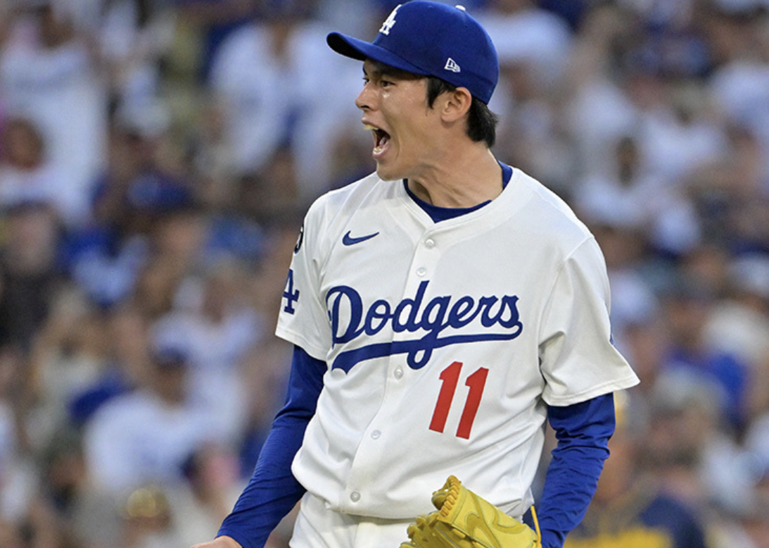 ドジャース・佐々木朗希投手は16日(日本時間17日)、本拠地で行われたブルワーズとのリーグ優勝決定シリーズ第3戦に9回から救援登板。1回無安打無失点で今ポストシーズン3セーブ目を挙げた。中でも話題を呼んだのが、“物理法則無視”の1球だった。